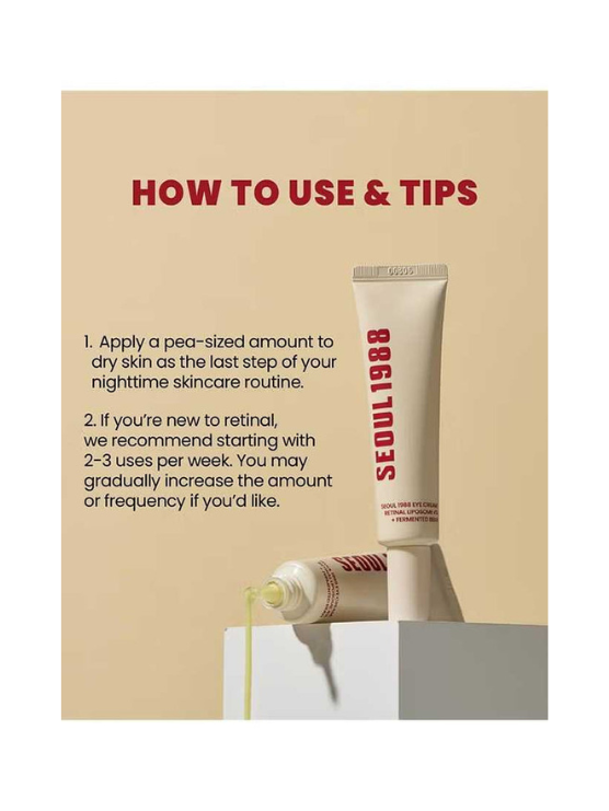 【RETINAL LIPOSOME FORMULA】This eye cream enriched with 4% of Retinal Liposome and Lactobacillus/Soybean Ferment Extract provides anti-aging and brightening effects, helps enhance skin texture and reduce the appearance of wrinkles with minimal irritation.